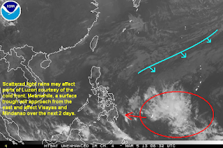 Quiet weather pattern should at least for another day or so. Another cold-front is diving down and will be enhancing some rains, once again, for parts of Luzon and Eastern Visayas tonight and into tomorrow. Meanwhile, a surface trough embedded along the ITCZ is moving westward and is forecast to bring precipitation into Visayas and Mindanao over the next few days.